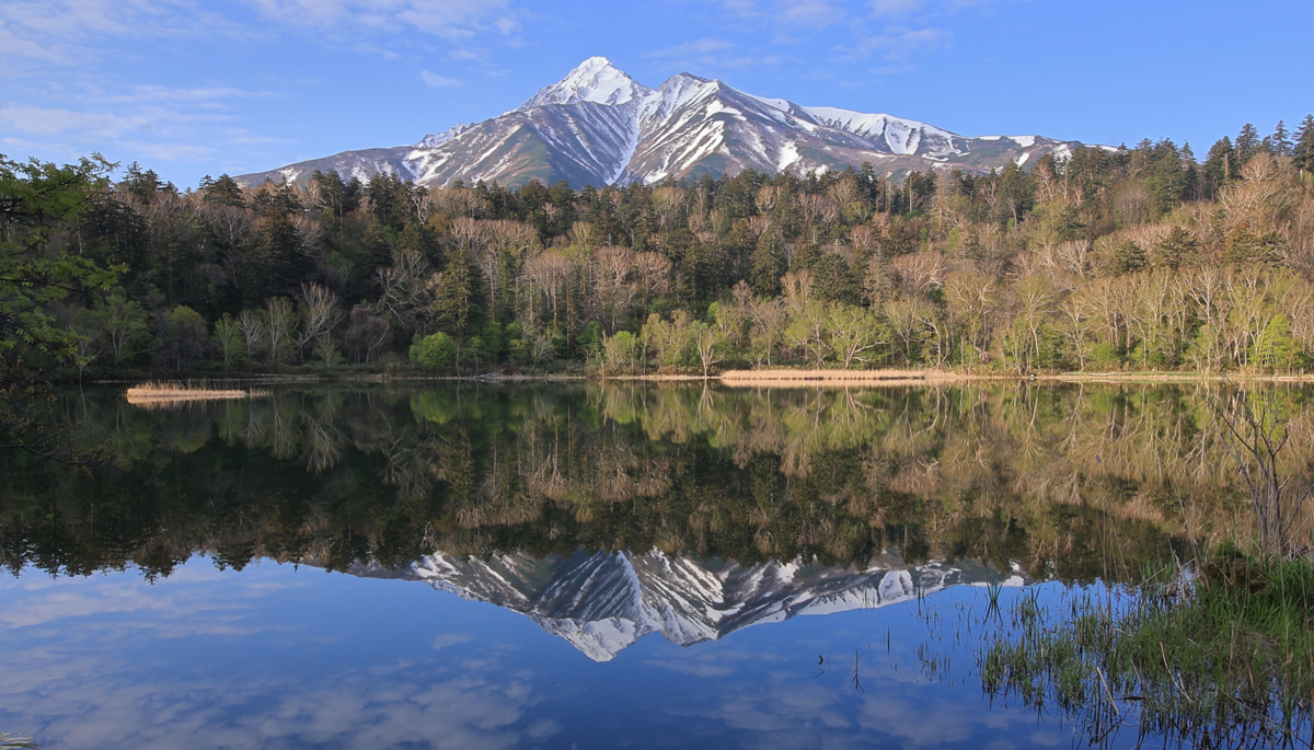 Hime-numa is a small, quiet pond where Mount Rishiri is reflected on the surface.