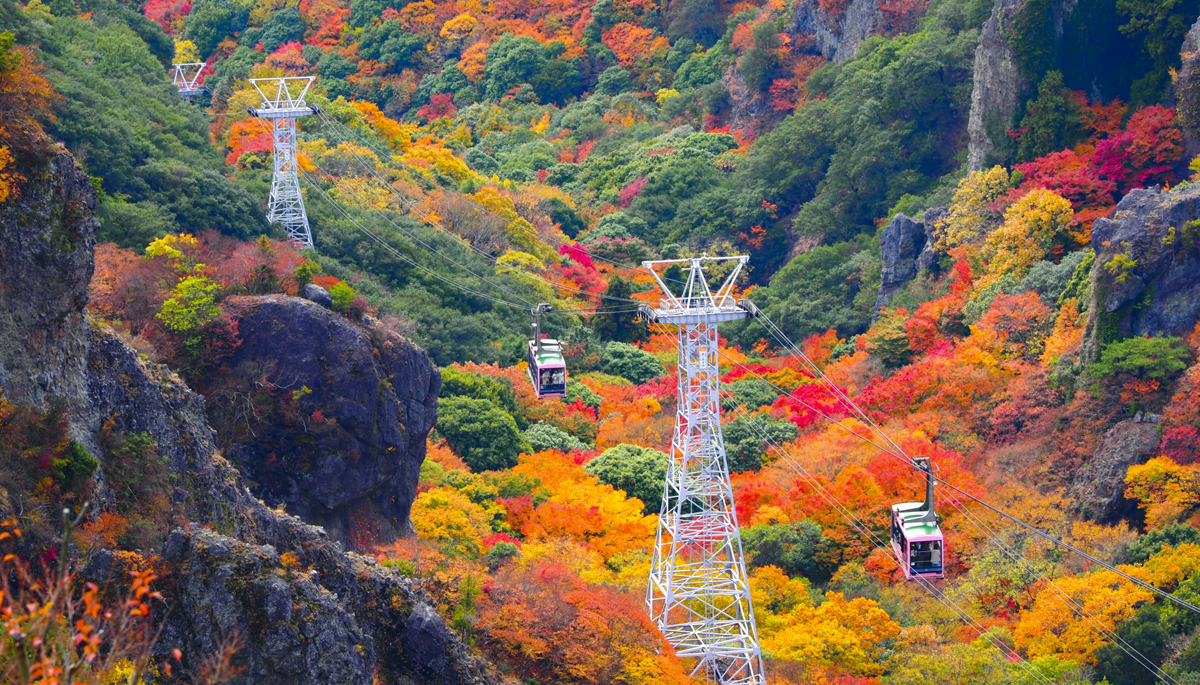 It is famous for its autumn leaves and the impressive views from the ropeway.