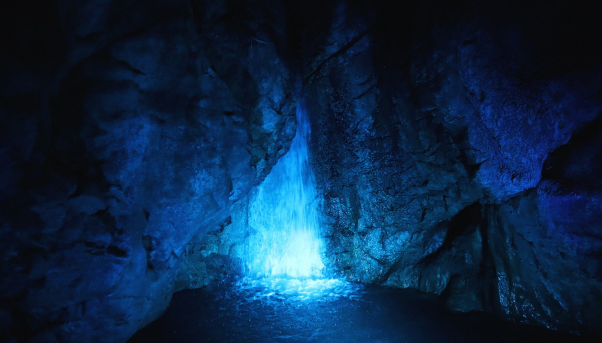 Inside, visitors can explore a vast and mysterious underground space.