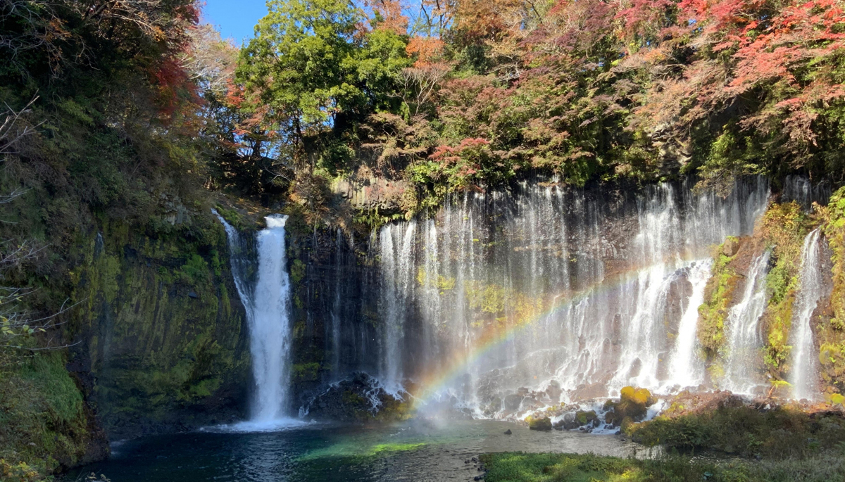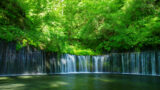 Shiraito Falls forms a curtain of countless thin streams of water falling from a height of about 20 meters across a width of 150 meters.